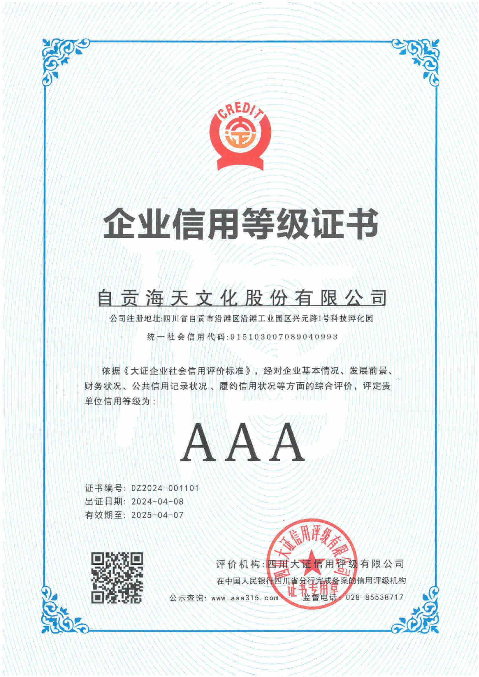 企业信用等级证书